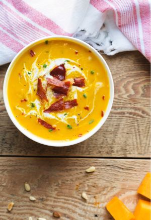 Butternut Squash Apple Soup with Bacon Bites